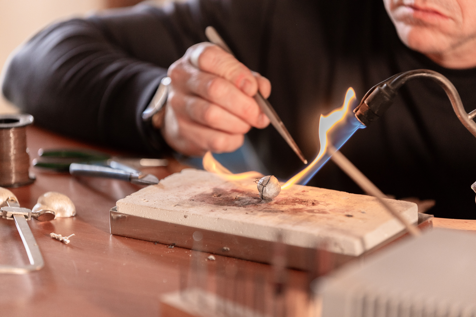 Teixint un diàleg entre tradició i modernitat, Damià Mulet dissenya i elabora joies artesanals que celebren l’essència de Mallorca. Les seves col·leccions, com les inspirades en les tàpares i els cristalls de sal marina, són un homenatge a elements icònics de l’illa. Totes les peces es creen amb materials de qualitat, amb un enfocament en la sostenibilitat i el respecte pel patrimoni cultural.